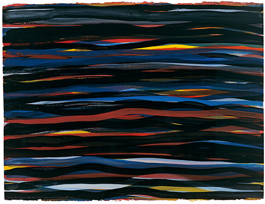 Uniquely, in LeWitt’s primary gouaches another important element arises: he withholds his own long-established directive that the execution of his work be carried out by others, and he reserves the gouaches for himself alone to create. Given this extra condition, the prescription becomes exclusively confined to the artist’s hand, and there evolves an entirely new circumstance.